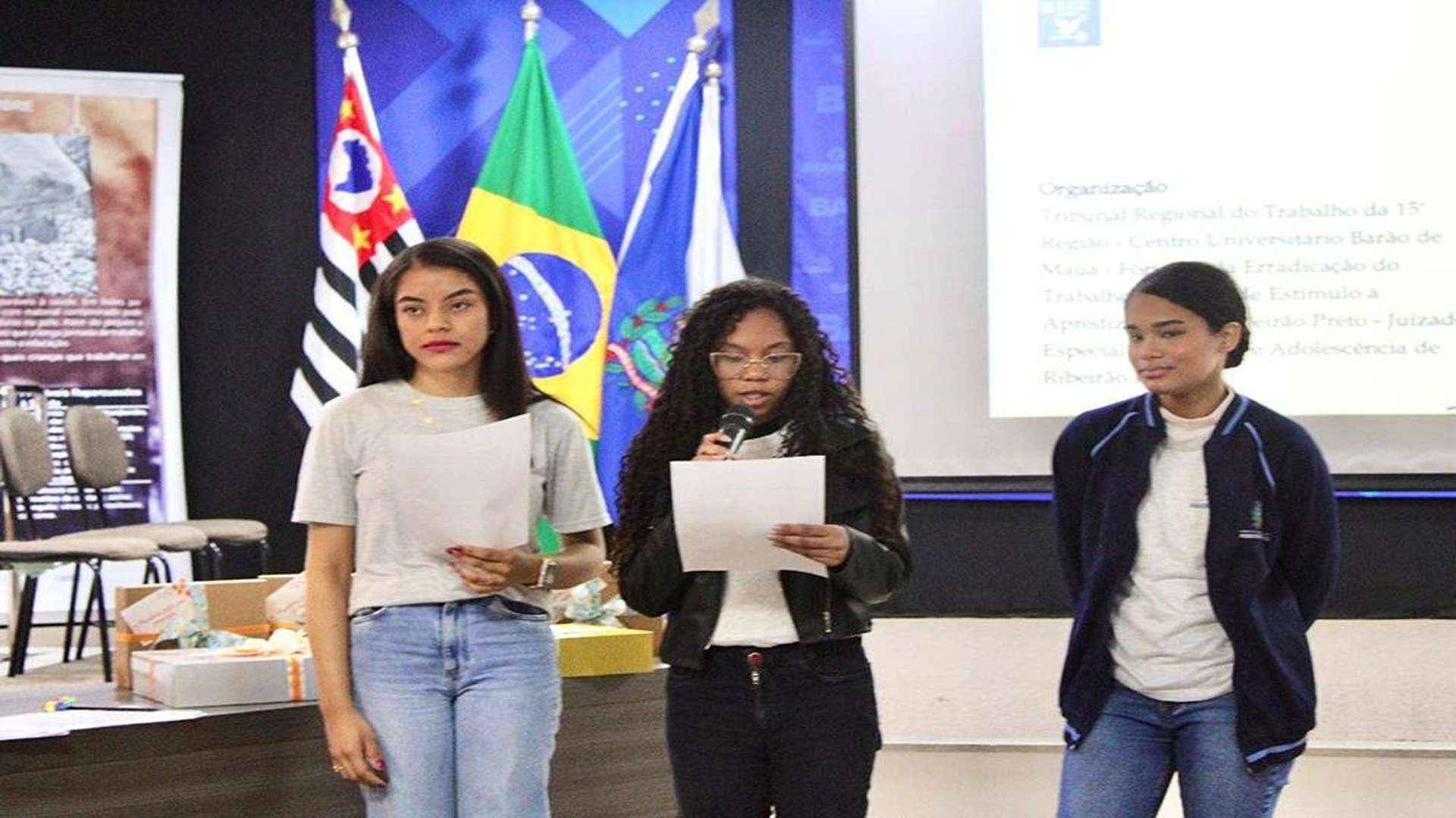 Três alunas da rede municipal de ensino de Ribeirão Preto foram premiadas no concurso de redação “Vozes do Amanhã: Escrevendo um Futuro Sem Medo”. A premiação aconteceu na última sexta-feira, 30 de maio, no Anfiteatro do Centro Universitário Barão de Mauá, e contou com a presença de autoridades, educadores, representantes de instituições formadoras e familiares.